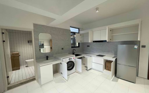 本工程位于广州市越秀区的一栋大厦内部,我们的工作内容是对大厦16楼全层内16单元住宅及其公共通道电梯前室进行全面改造,内容包括:原地面、门窗、天花、单元内间墙等拆除更换及安装功能配电及部分社保设施(给排水、消防洁具、照明、定制家具和厨柜)等,工程装修面积约为800㎡。